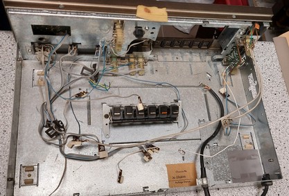 So, ich habe das Deck geöffnet, um die Funktion der verbleibenden Baugruppen und Teile nochmal zu überprüfen. Im Deck verbleiben lediglich alle Potentiometer, Schalter, LED´s, der Anzeigebaustein und der Kopfhörerverstärker einschließlich der dazu gehörenden Anschlussleitungen. Und natürlich der Tastensatz vom Laufwerk. Der Rest geht erst einmal als Ersatzteile in den Schrank. Dann werden die restlichen Komponenten entfernt.
